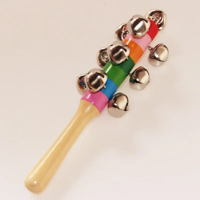 Free Shipping Colorful Rainbow Hand Held Bell Stick Wooden Percussion Musical Toy for KTV Party Kids Game Wholesale Retail