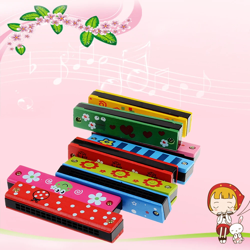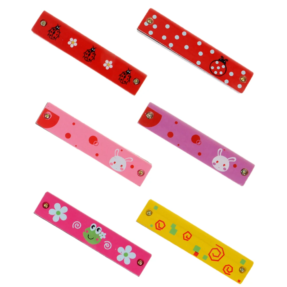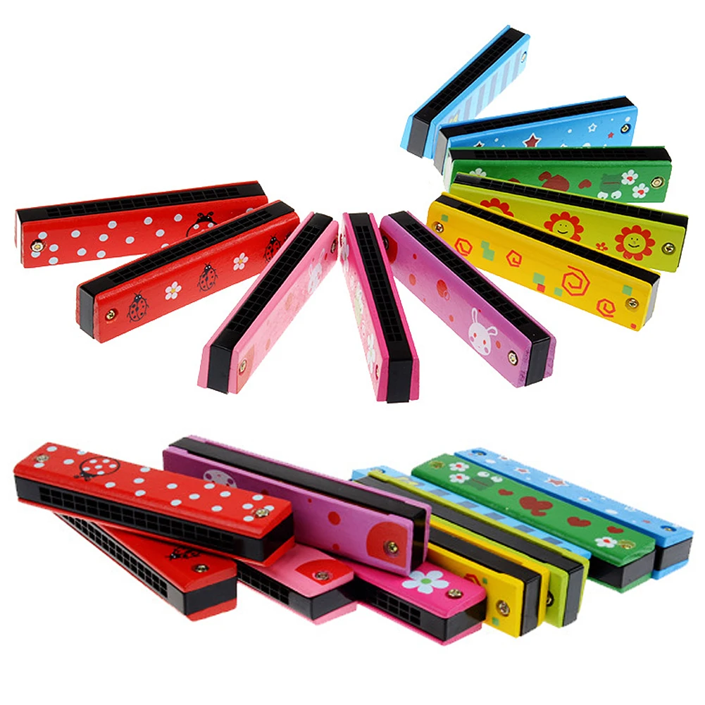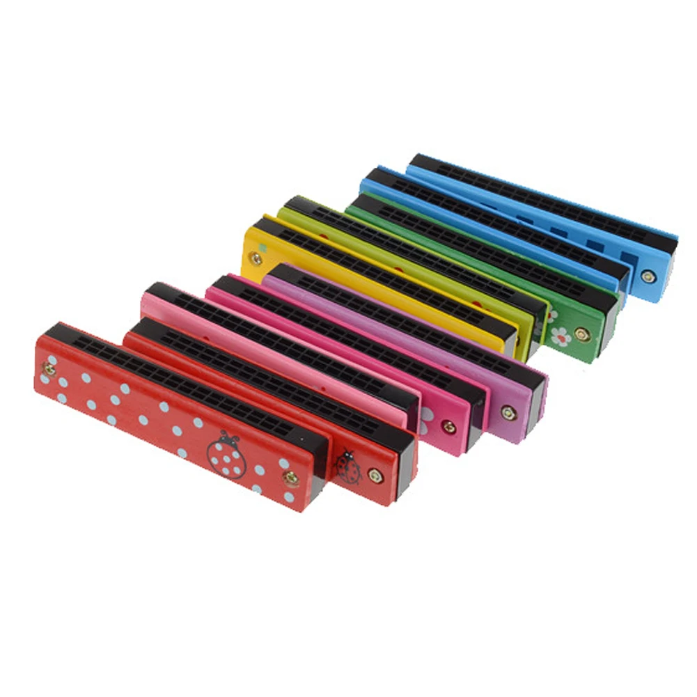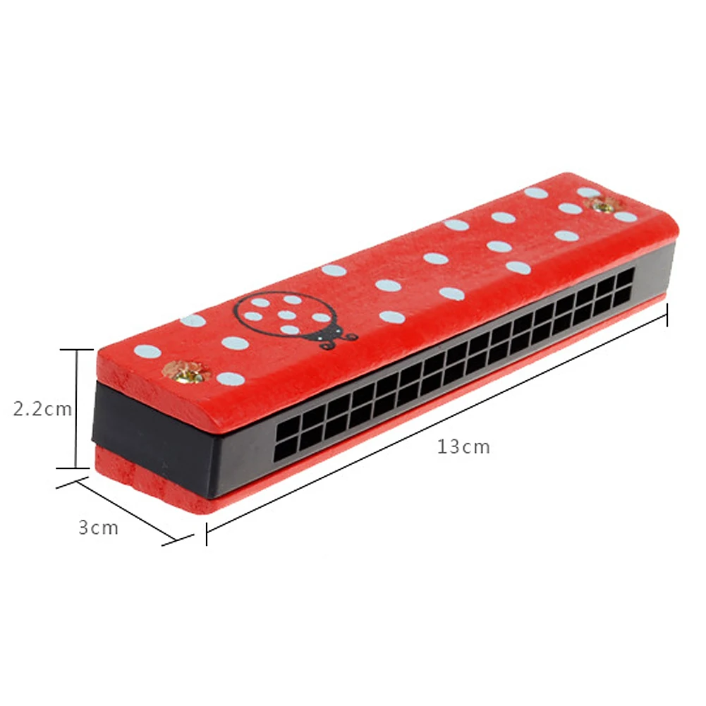 Material:Wood and plastic Color:Assorted colors and patterns,send one randomly. Size:Approx:13 x 2.7 x 2.2cm Package Includes: 1x Harmonica toy