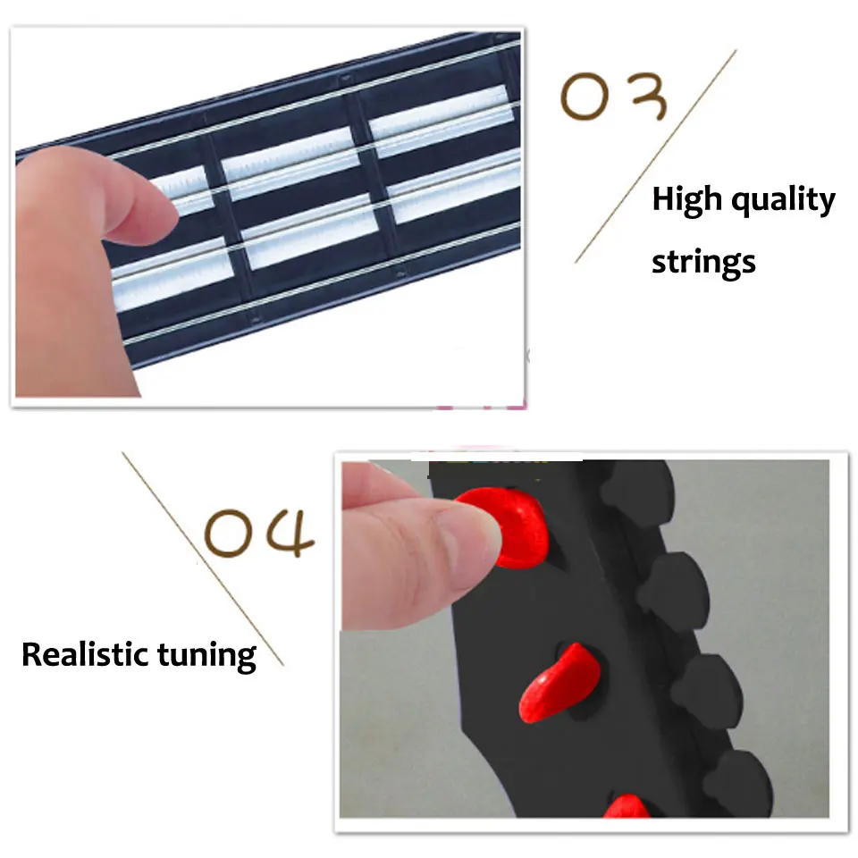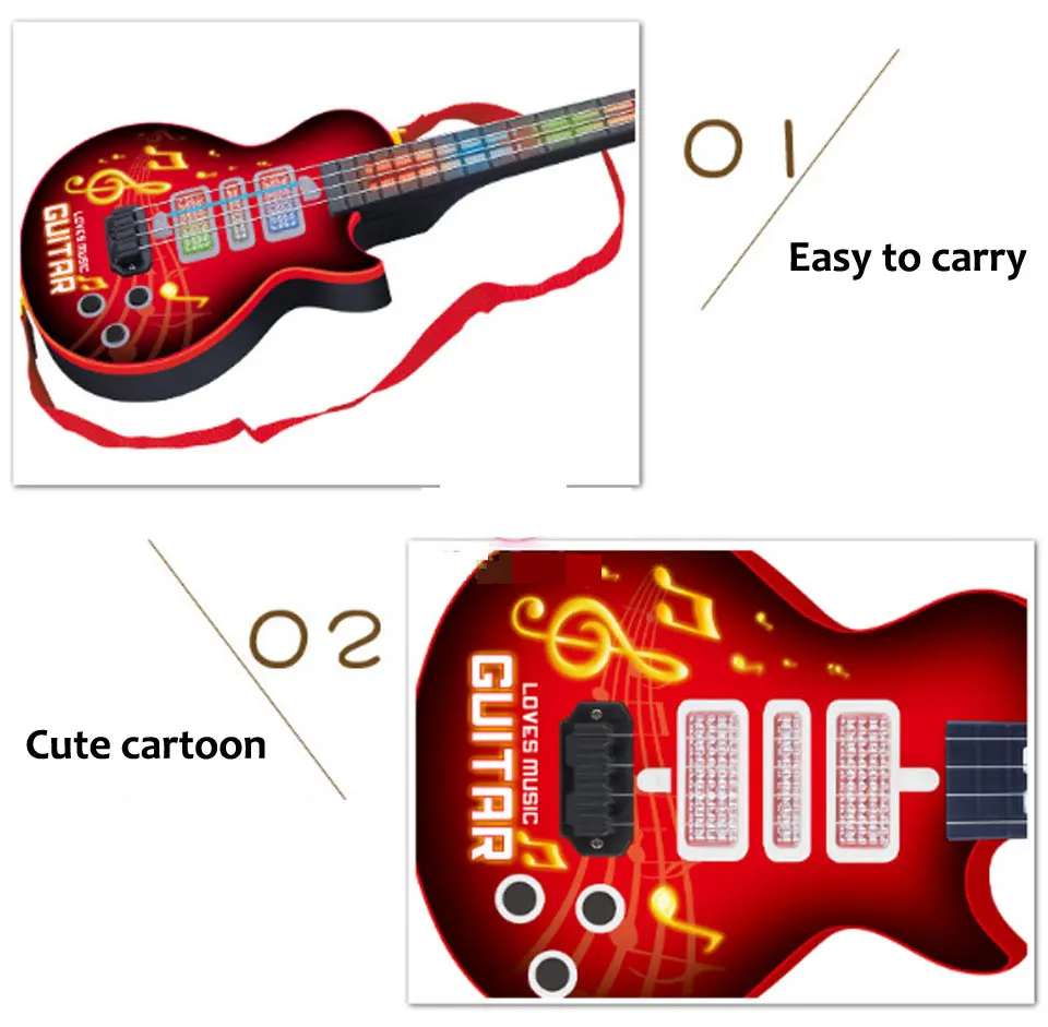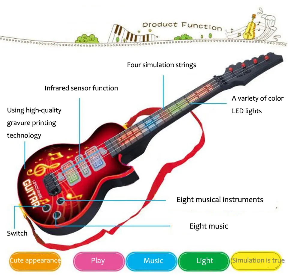 .While you play the Kids Toy Electric Guitar, the guitar makes fun sounds and flashes lights