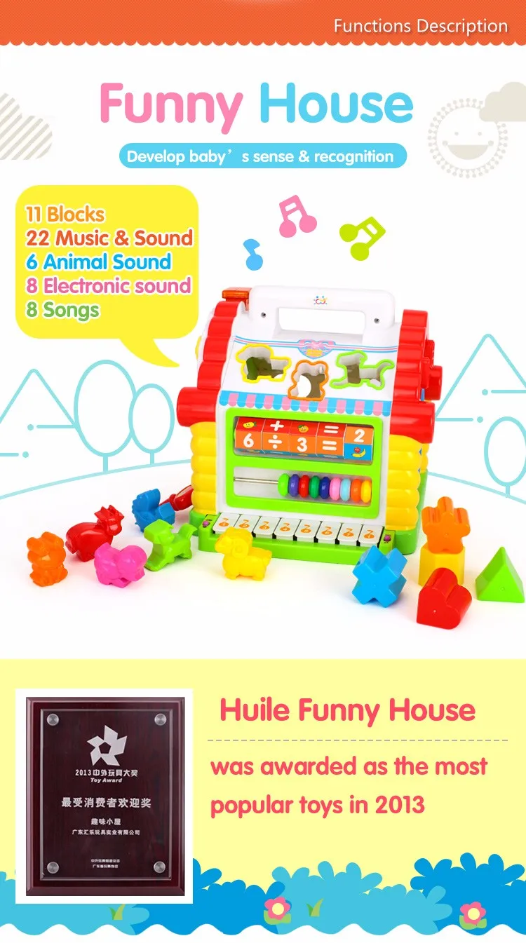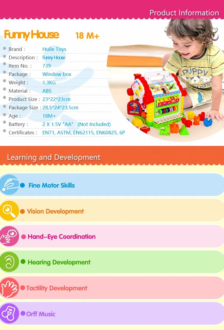 HUILE TOYS 739 Multifunctional Musical Toys Baby Fun House Musical Electronic Geometric Blocks Sorting Learning Educational Toys
