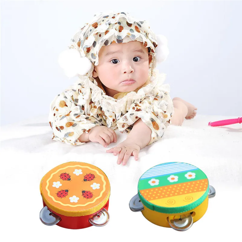 Just catch the round frame and spin back and forth, and the little cymbals in each holes will hit together to the delight of your child. It’s not high-tech, but it’s fun. Children will learn a sense of rythm and beat with a little practice. 1 x Mini Hand Drum