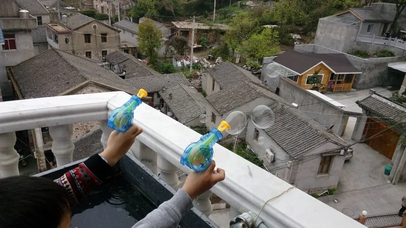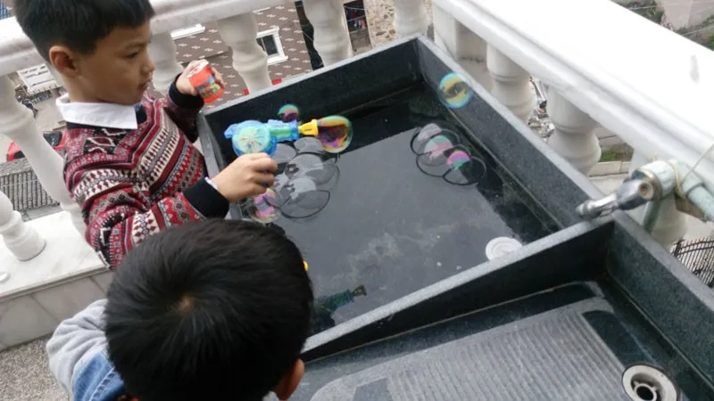 2.then put the head of the gun into the soap water,then push the button