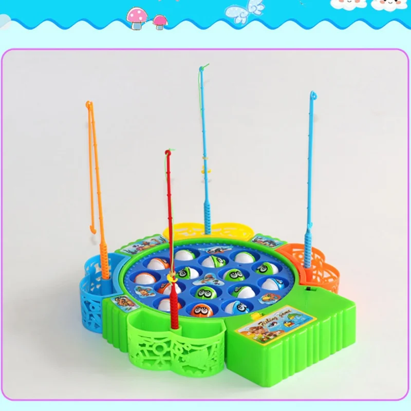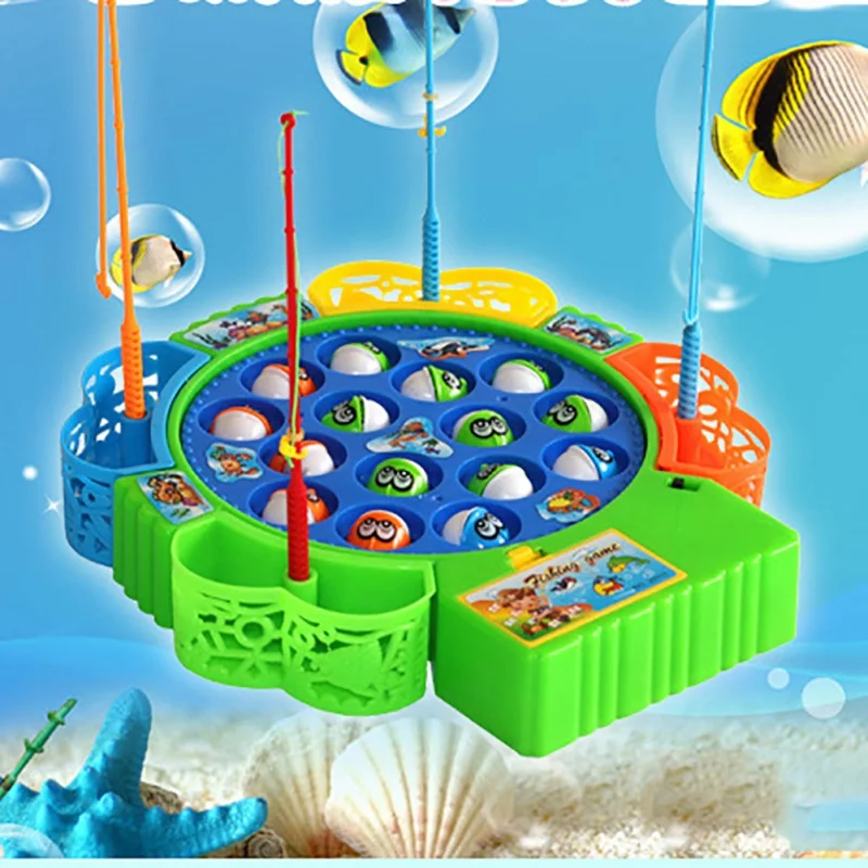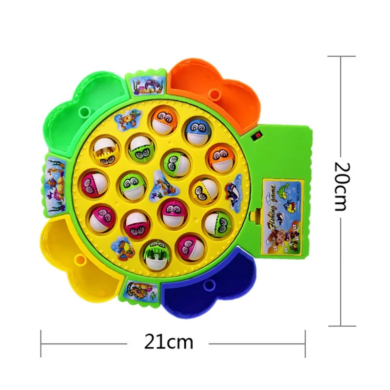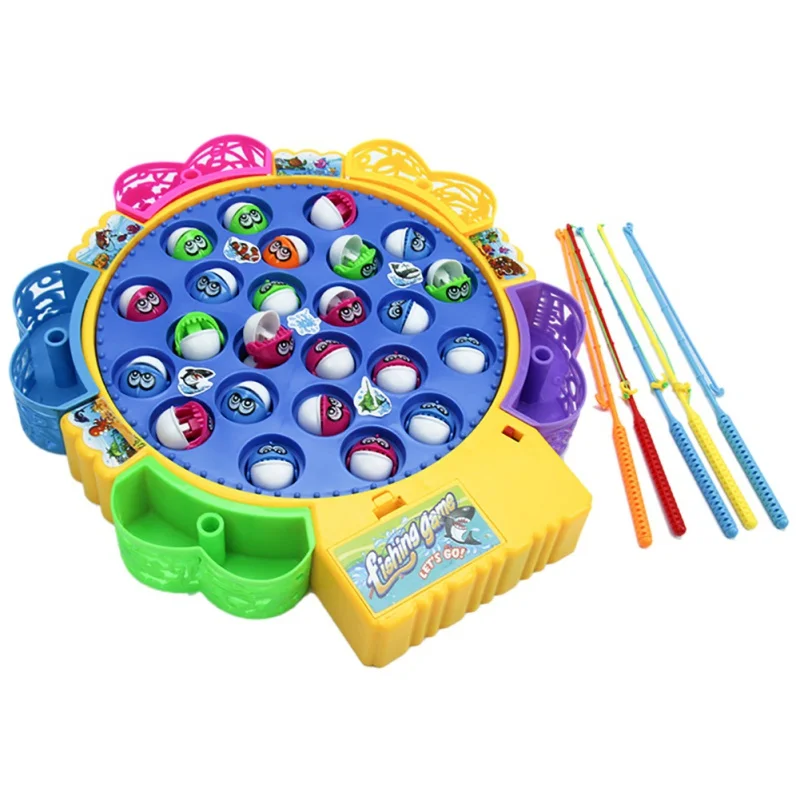 The original fishing game-it’s a classic! The game board spins and the fish open and close their mouth Includes 21 colorful fish and 4 fishing poles Tested for quality and safety Manufacturer Recommended Age: 4 and up Try to get the most fish in this classic action packed game Deluxe plastic game base 1-4 players
