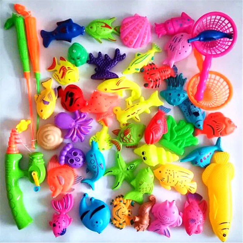 45pcs/set Plastic Magnetic Fishing Toys Set Game Children 3 Poles 2 Nets 40 Magnet Fish Indoor Outdoor Fun 3-6 years Baby