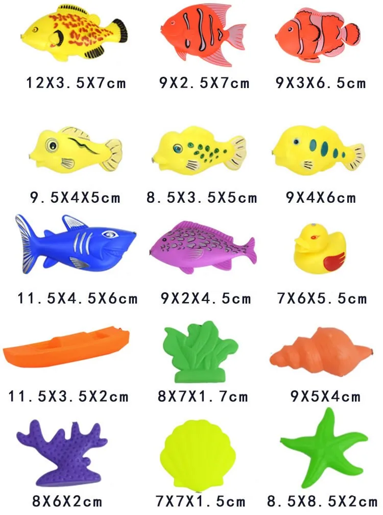 24pcs/set: Colorfull Fishes*20pcs Fishing rod *2pcs Fishing nets*2pcs