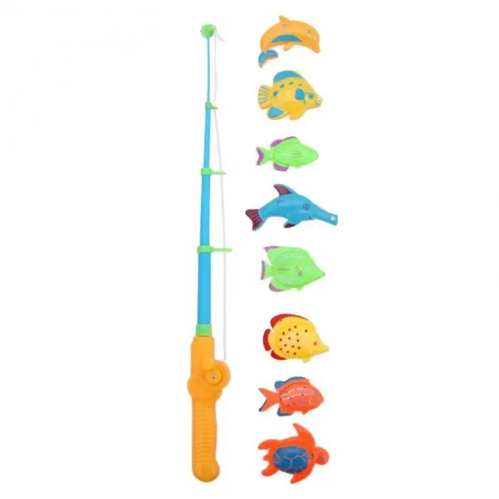 Magnetic 1 Rod 8 Fish Catch Hook Pull Baby Children Bath Toy Fishing Game Set Outdoor Fun Toys FJ88