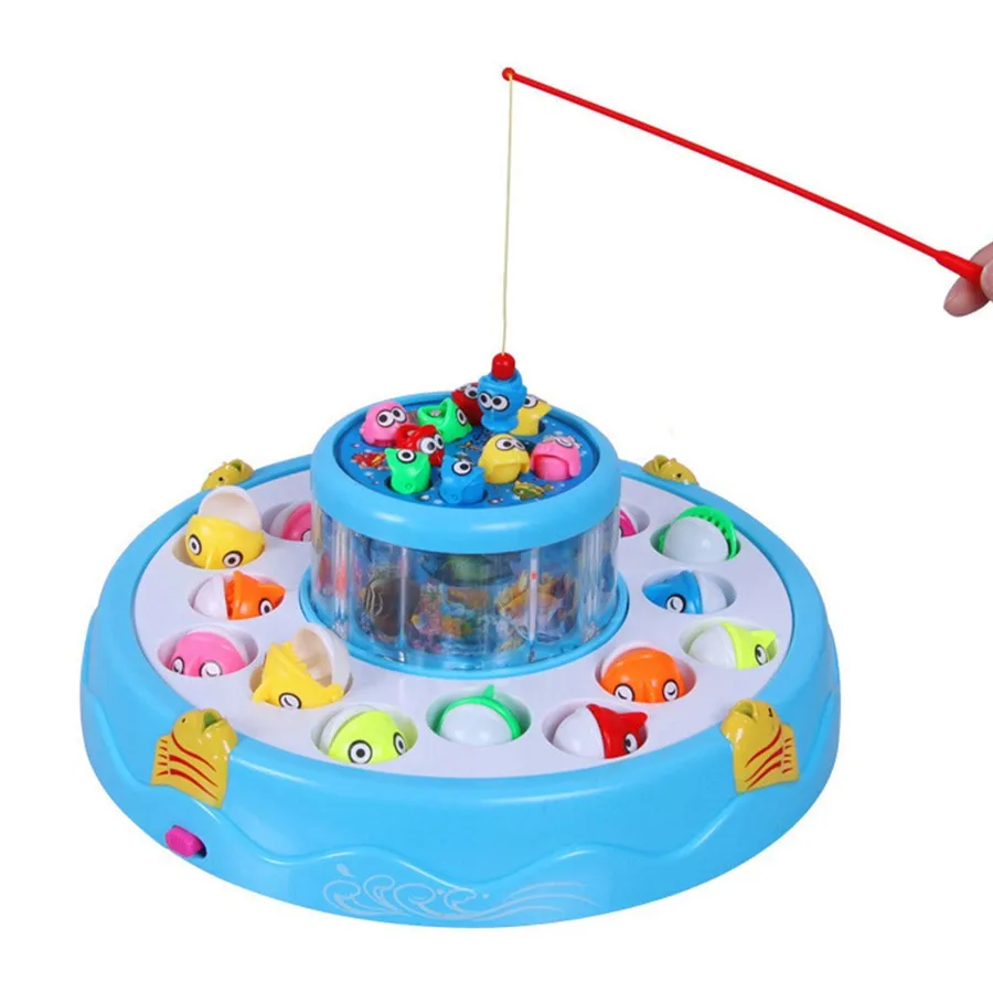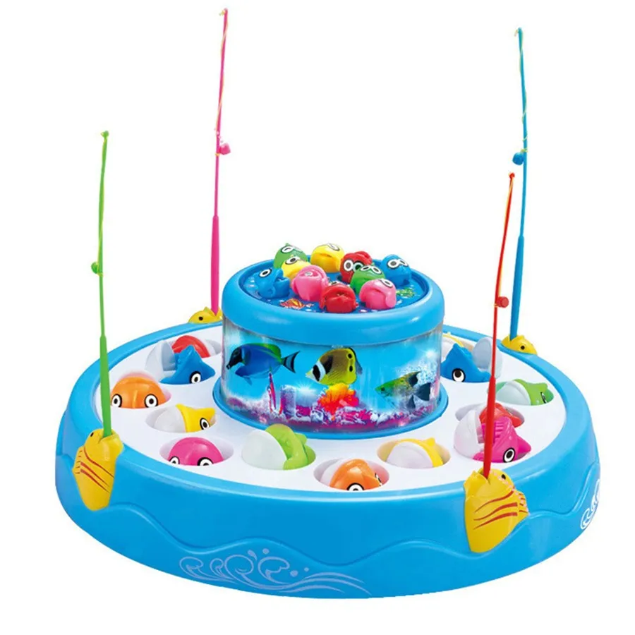 Double Fish Pool Electric Rotating Magnetic Fishing Game with the Music & Light Christmas Toy Gift – Color Random