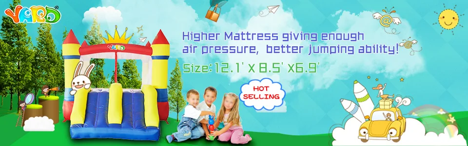 ●The bounce house from YARD is an inflatable bouncer with dual slide. This bouncer measures 12.1′ length, 8.5′ width and 6.9′ height when inflated, and has a capacity of 3 or 4 children (maximum 100 pounds each, 250 pounds total). This bounce house features a dual slide, a bouncing area, low enough to clear standard ceilings but tall enough to keep the kids safely inside; ideal for almost anywhere in or around house, in backyard or living room, for a birthday party, family reunion, or for any occasion to keep the kids entertained as they bounce around in the moonwalk.