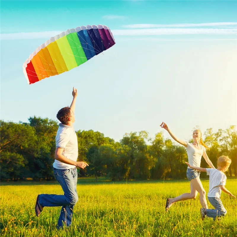 Power Dual Line Stunt Parafoil Parachute Rainbow Sports Beach Kite with 2pcs 30m Nylon Flying Lines for Beginner Kid Outdoor Toy