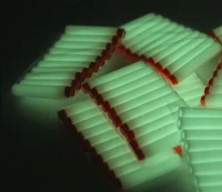 Товар пришёл во время. Пульки белого цвета. Изготовлены качественно. Летают далеко и ровно. В темноте святятся. Товаром доволен! Особенно ребёнок! Рекомендую товар и продавца.