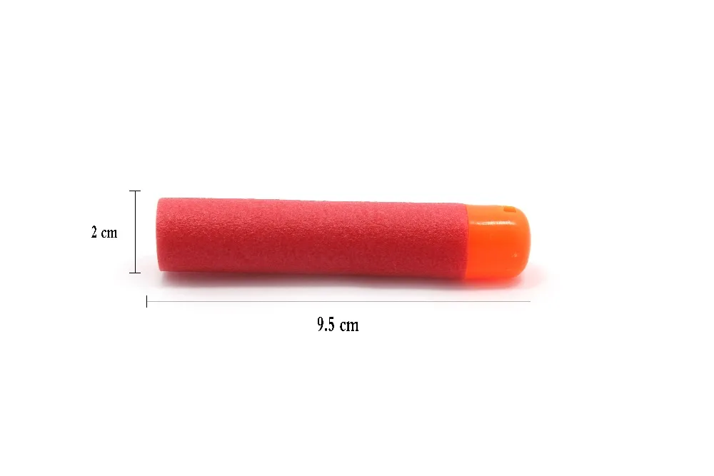 Darts Size:9.5x2cm/3.74″*0.79″ Quantity: 30 pcs Sniper rifle bullets Color:Red,blue Material: EVA sponge + Silica gel Mega darts fly 85 feet and scream as they fly. Colors may not appear exactly as seen on photo in real life due to variations between the computer monitors and naked eye color different. Please make sure the darts fit your gun before you buying!