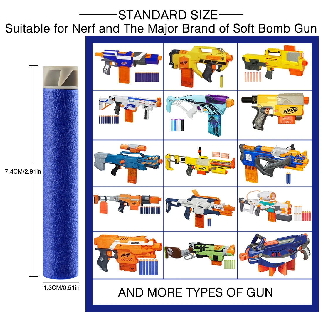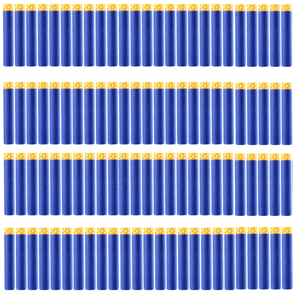 Pack of 100 Dart Refills Flat Soft Head Foam Bullets for Nerf Toy Gun 7.4c*1.3cm – Dark Blue + Orange