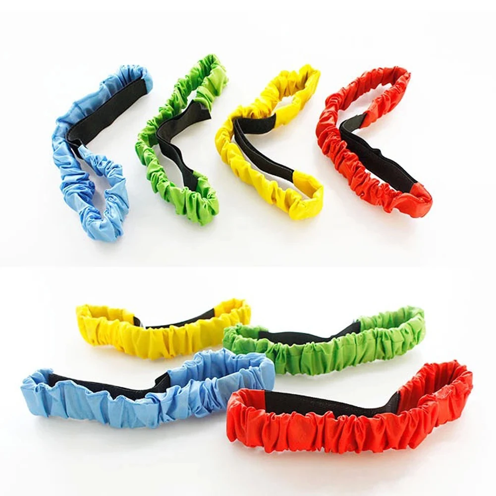 Features: Colorful elastic sport rope for two people three-legged running race. Specification: