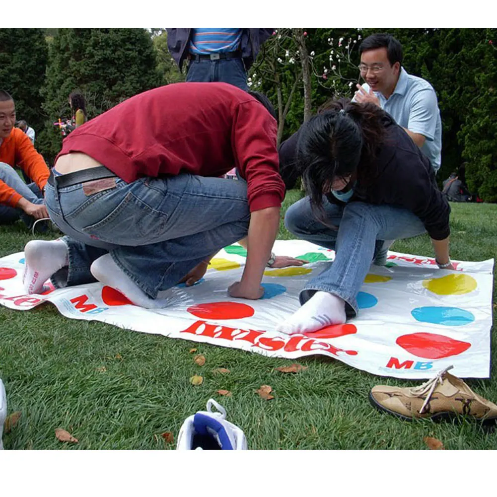 Twister game challenges you to put your hands and feet at different places on the mat without falling over.