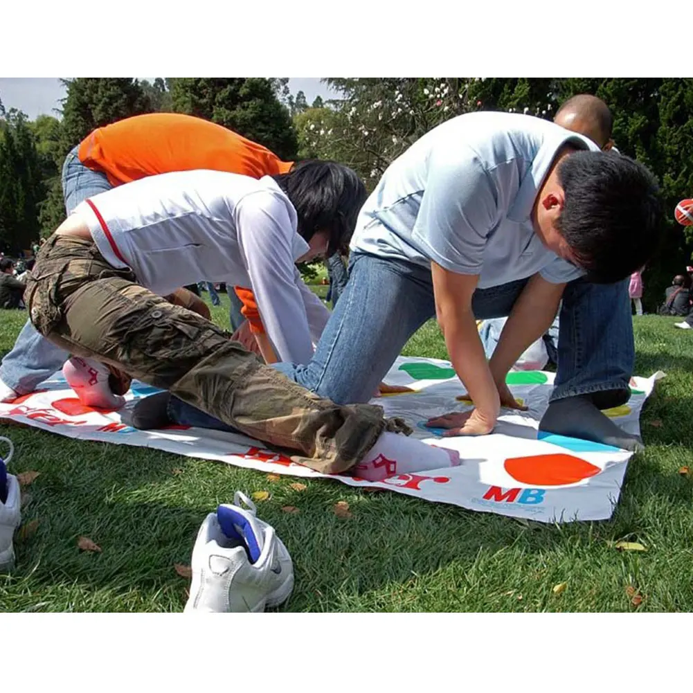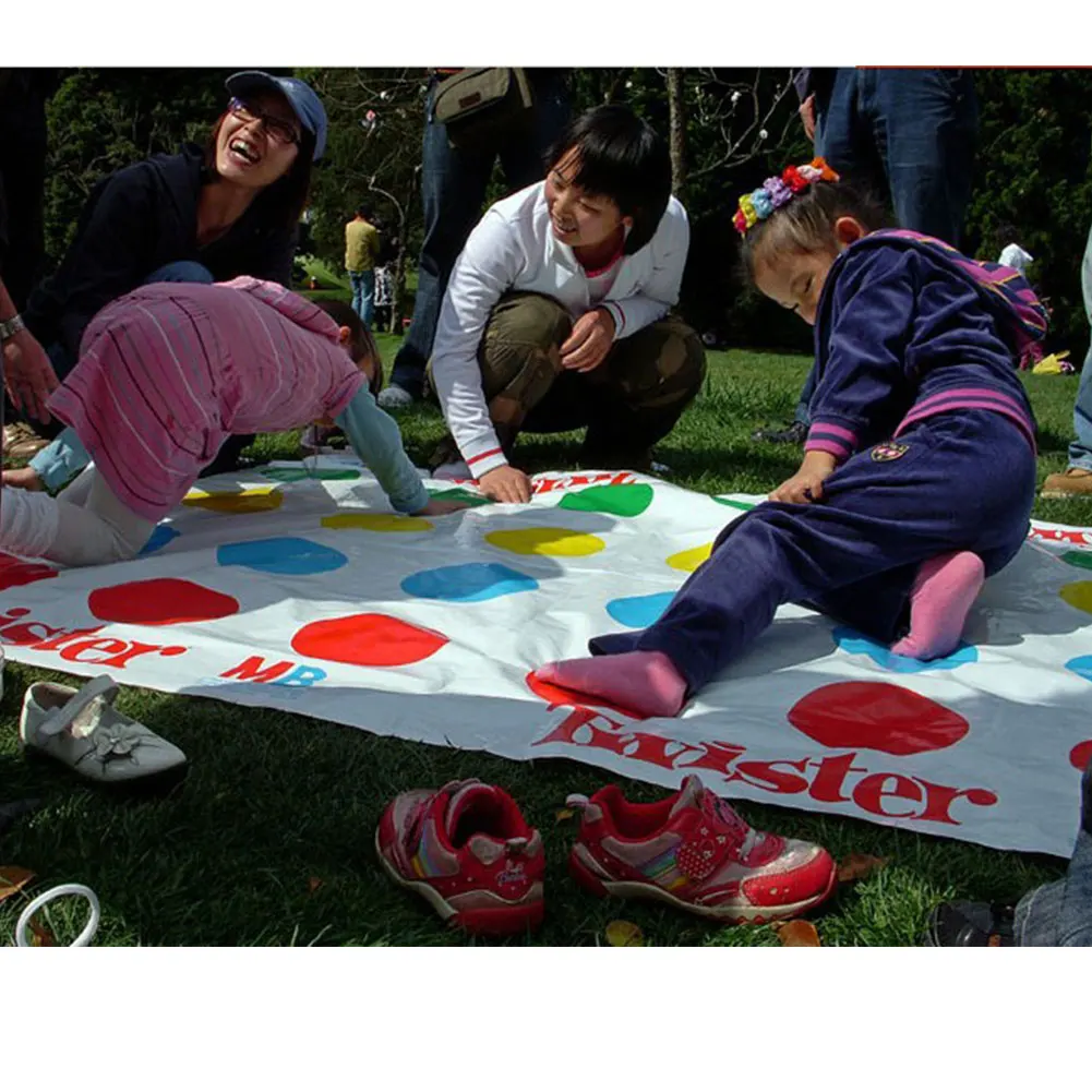 Twister game challenges you to put your hands and feet at different places on the mat without falling over.