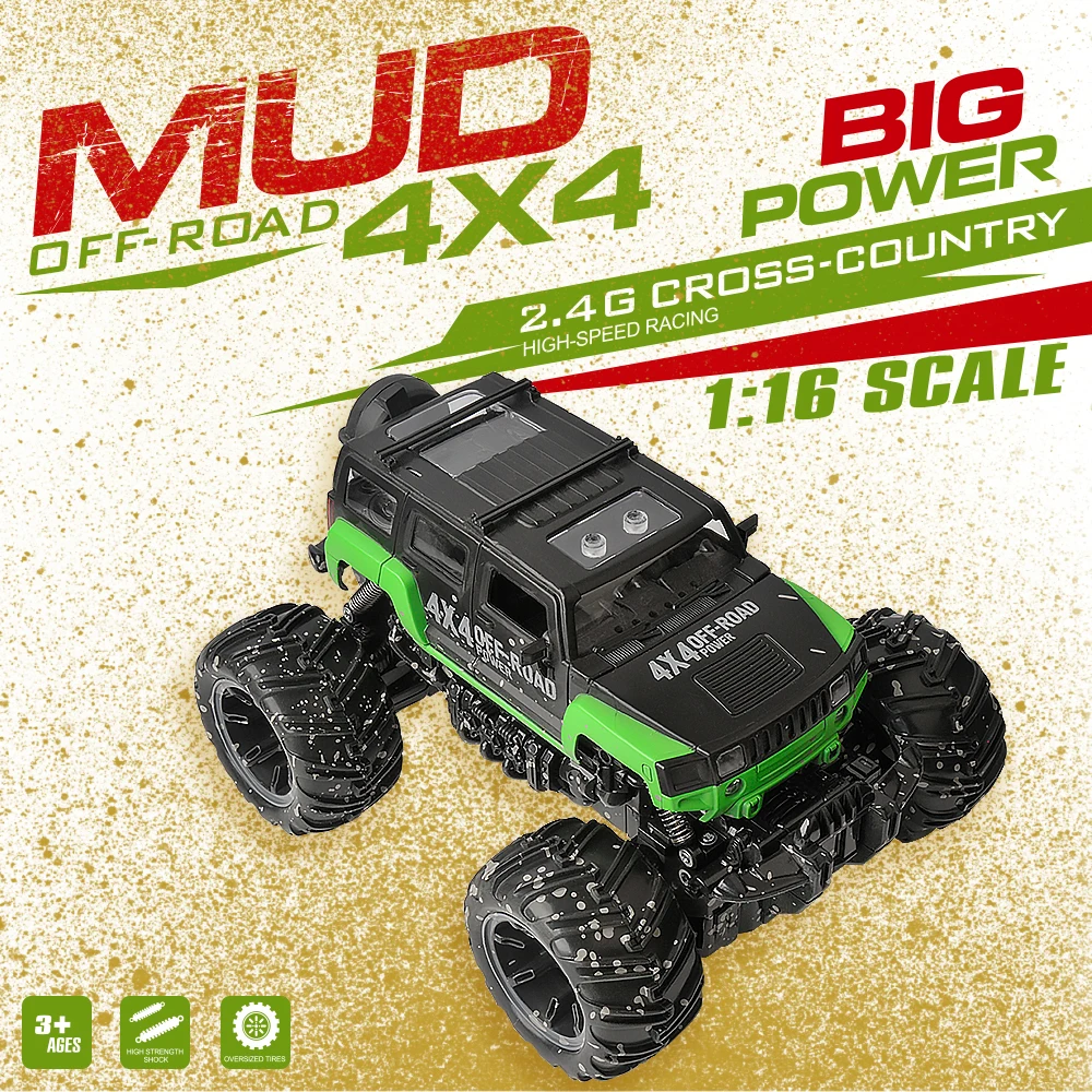 GizmoVine RC Car 2.4G 1:16 Scale Rock Crawler Car Supersonic Monster Truck Off-Road Vehicle Buggy Electronic Toy For Kids Gift
