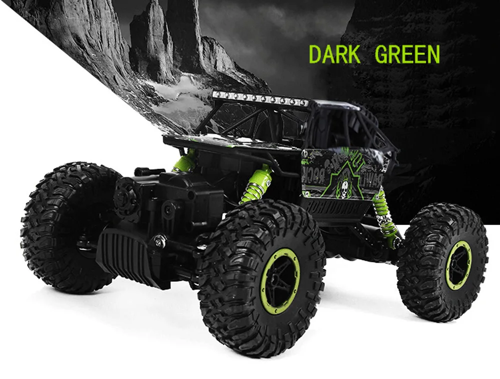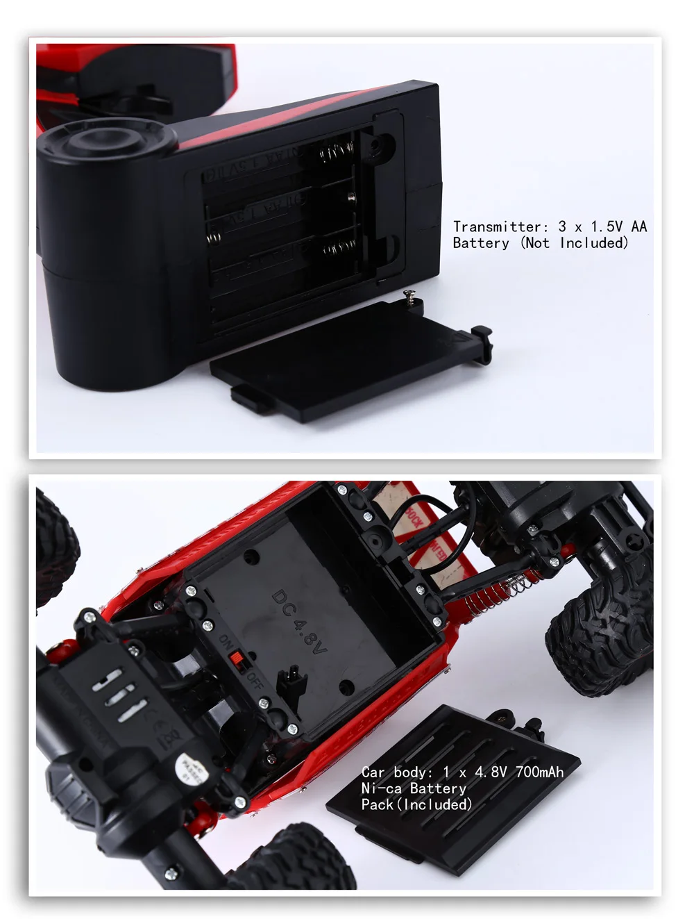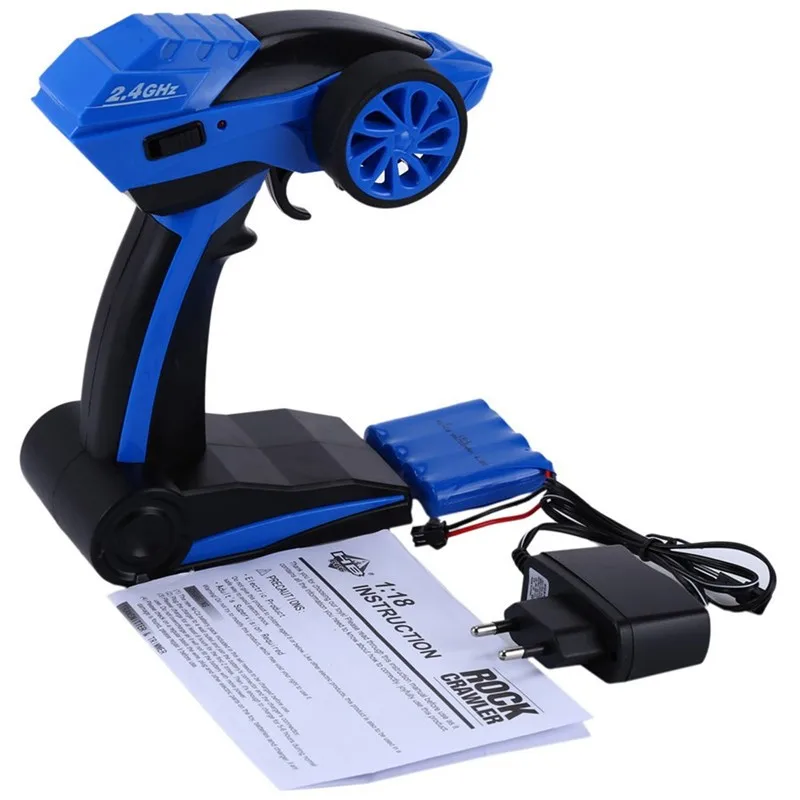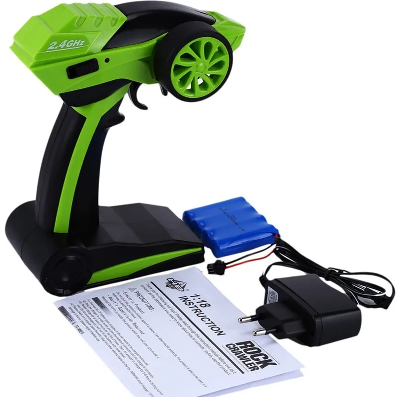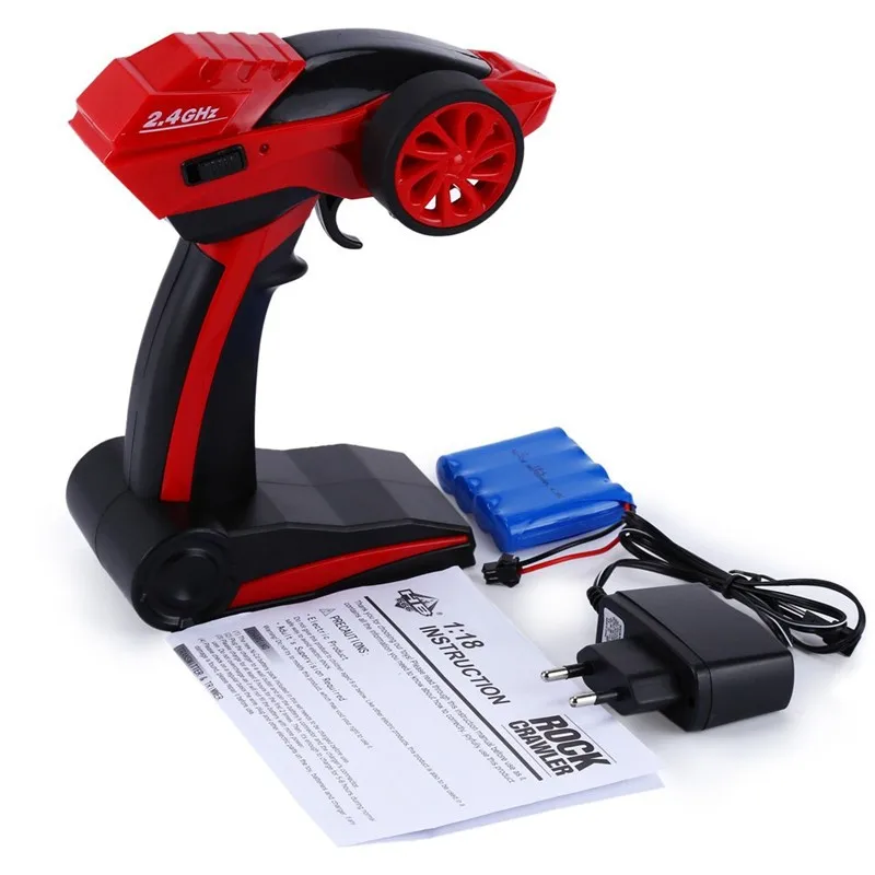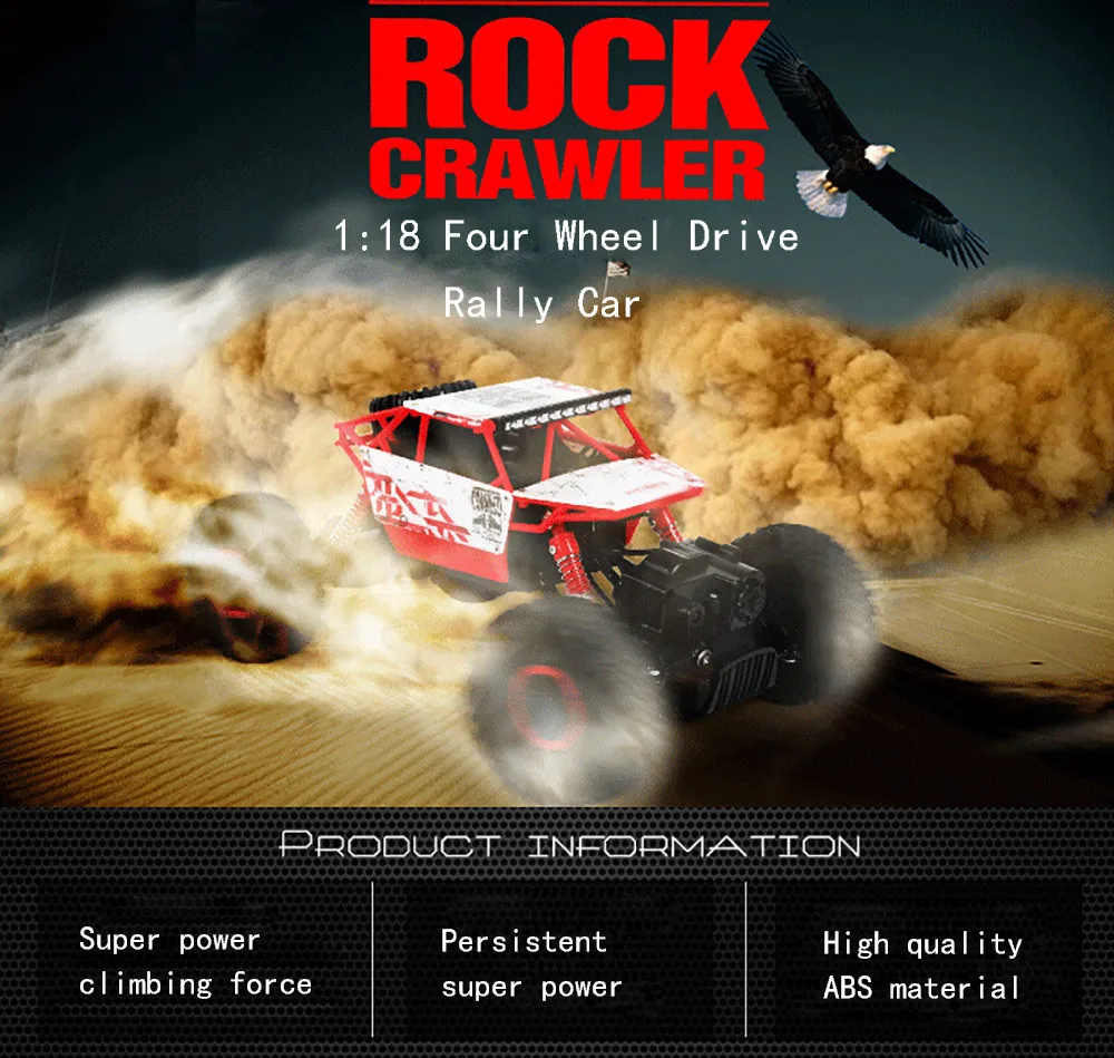 Features: 2.4Ghz 1/18 full scale remote radio control rock crawler, a off-road race trunk toy for kids above eight years old.
