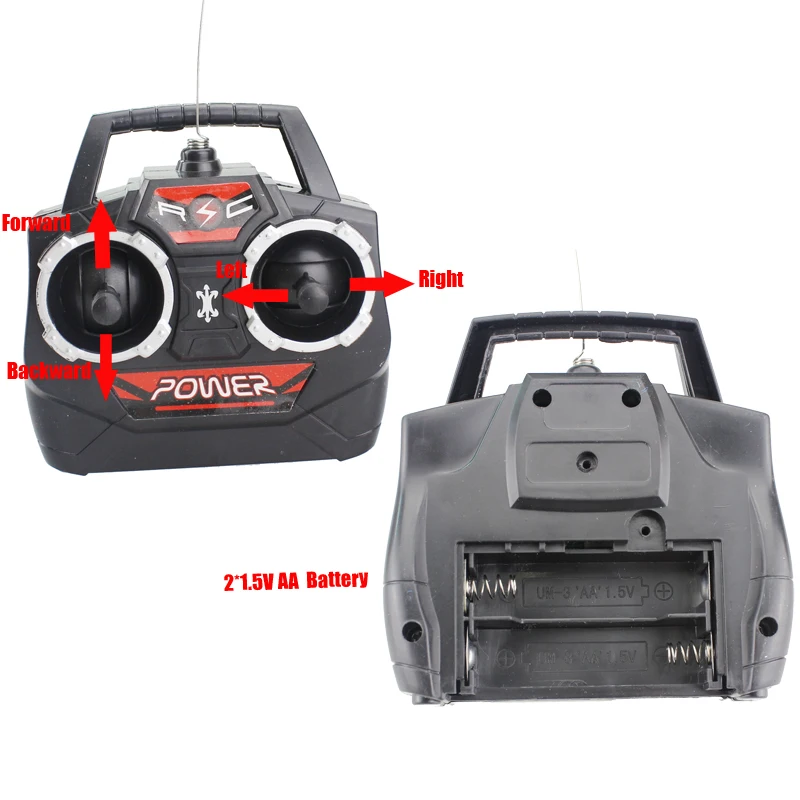 Newest R/C monster truck. 27MHz radio technology, wide control range up to 50M. 2 Wheel Drive Anti-interference, several R/C car competitive at the same time and place. With powerful motor, speed up to 10KM/H, real experience. Suspension shockproof system, better protect the truck. With Hi-Q rubber wheel, anti-skid, perfect experience. Applicable field: ground, grass or sand land. Description: 100% brand new, high quality Item Number:AL0401 Material:100% harmless plastic and electronic elements. Car size:18.5 x 15.5 x 13cm Package size:27x 14x 16cm Truck Weight:0.5kg Playing time:10-12 minutes Control range:More than 30M Packing List: 1 x transmitter(2*1.5V AA battery not include) 1 x user manual 1 x Car(4*1.5V AA Battery not include)