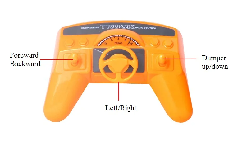 Functions: turn left,turn right,foreward,backward,dumper up,dumper down