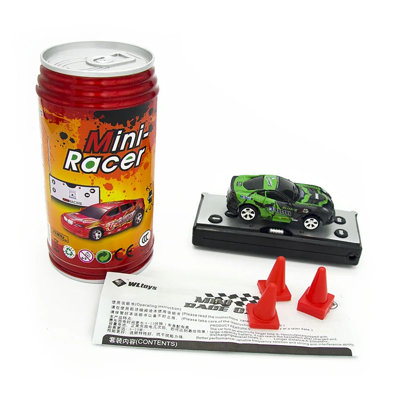 Wltoys RC Cock Can Car Mini Racer Radio Remote Control Coke Cans RC Car Micro Racing Car with 4 Road Block Toys for Children