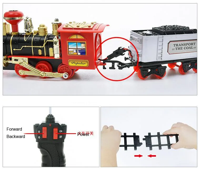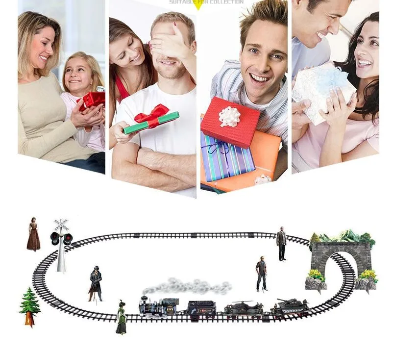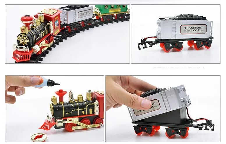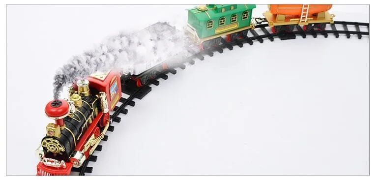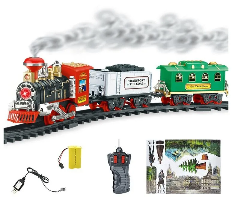 Classic Train Set for Kids with Smoke Realistic Sounds Light Remote Control Railway Car Christmas Gift Toy