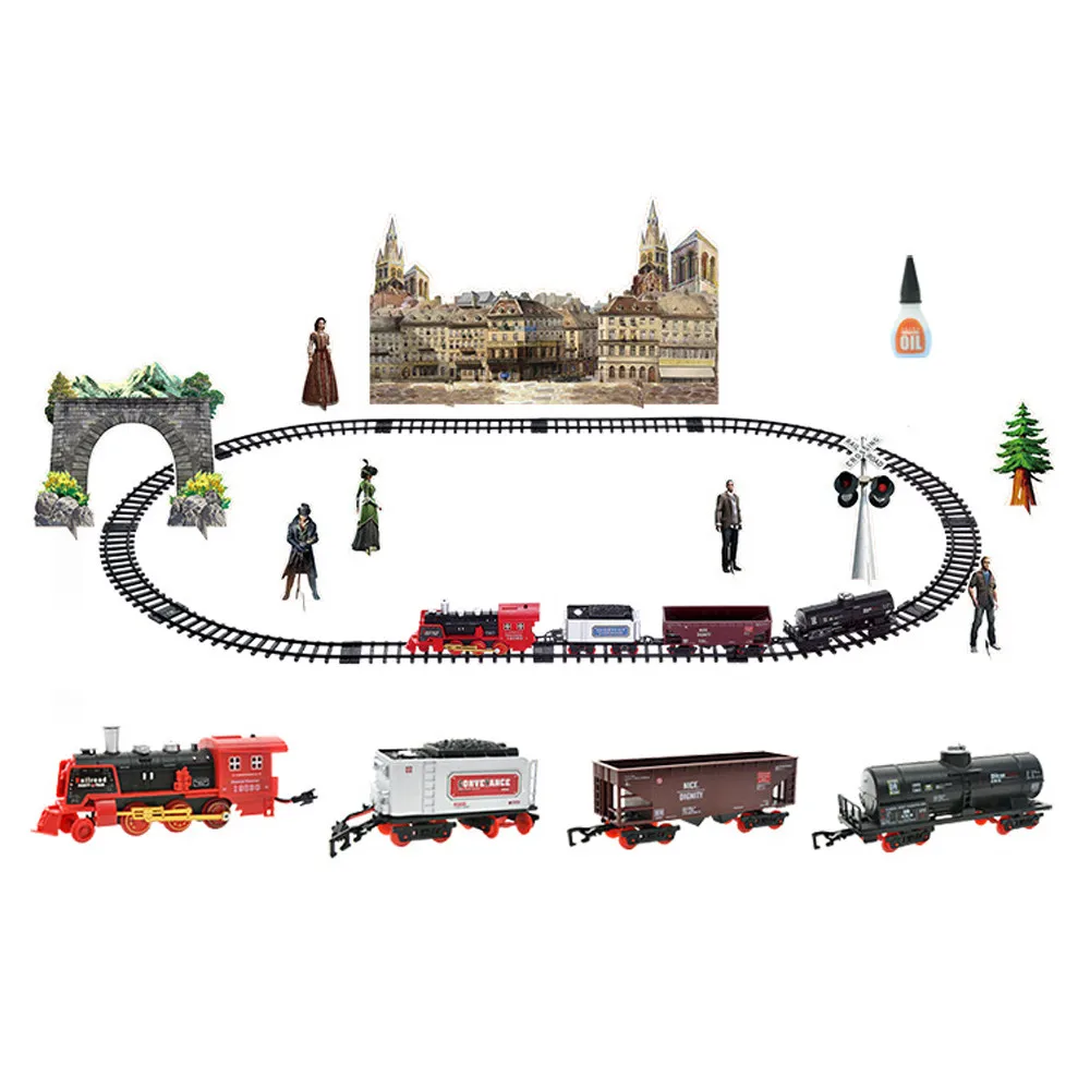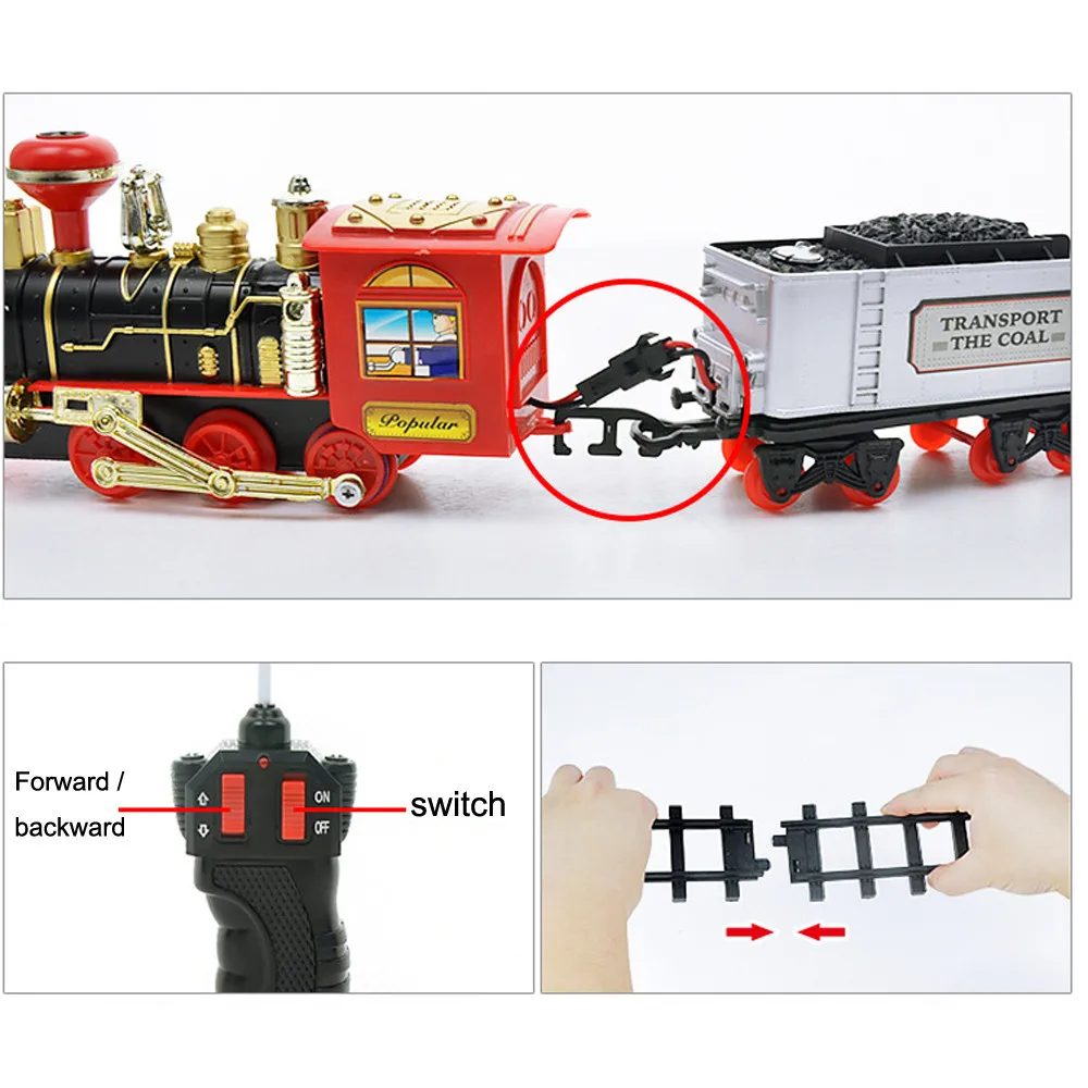 New RC Train Children’s Traffic Toys Remote Control Conveyance Car Electric Steam Smoke RC Train Slot Set Model Toy For Kid Gift