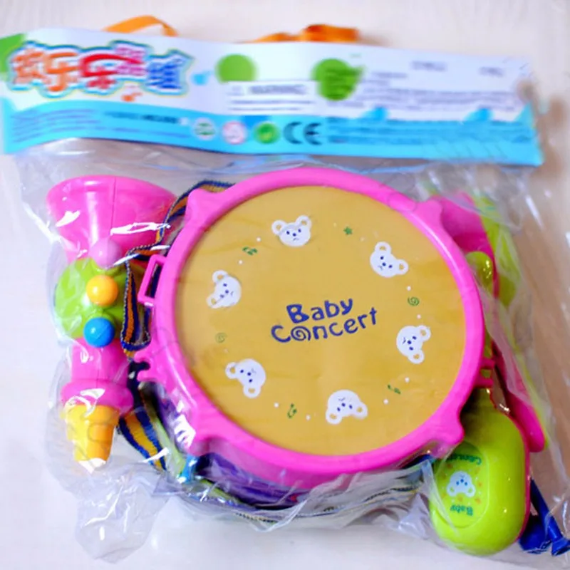 Package includes: 1xdrum with drum sticks+1x trumpet+2 x Sand hammer +1xHandbell