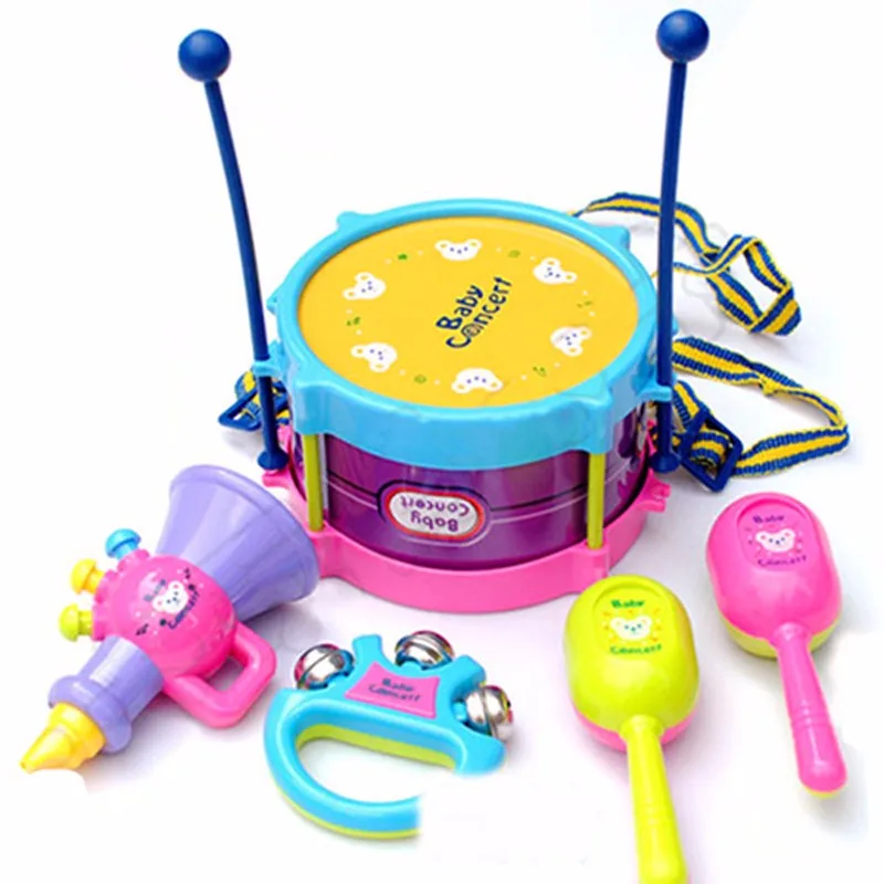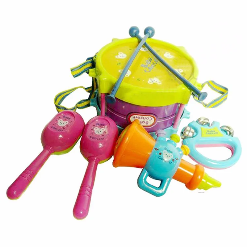 quality 5pcs/set Musical Instruments Playing Set Colorful Educational baby Toys Drum/Handbell /Trumpet/Sand Hammer/Drum Stick