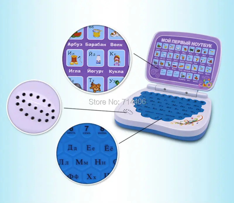 Welcome to wholesale,if you have big quantity,pls feel free to contact us,we will give you best discount, thank you ! Abstract: Russian language Alphabet Pronunciation learning machine Laptop mini Computer for all kid educational toys pink/bule,best gift Item specifics: name: russian learning machine material: plastic item size:15.5*12.5cm packing size:25*20*6 cm no with color box .